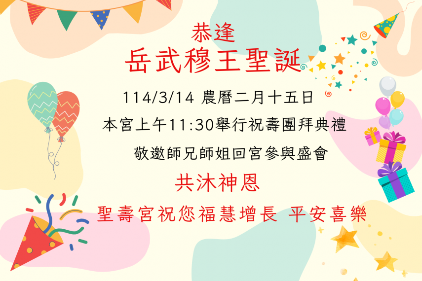 恭逢岳武穆王聖誕 114/3/14 農曆二月十五日