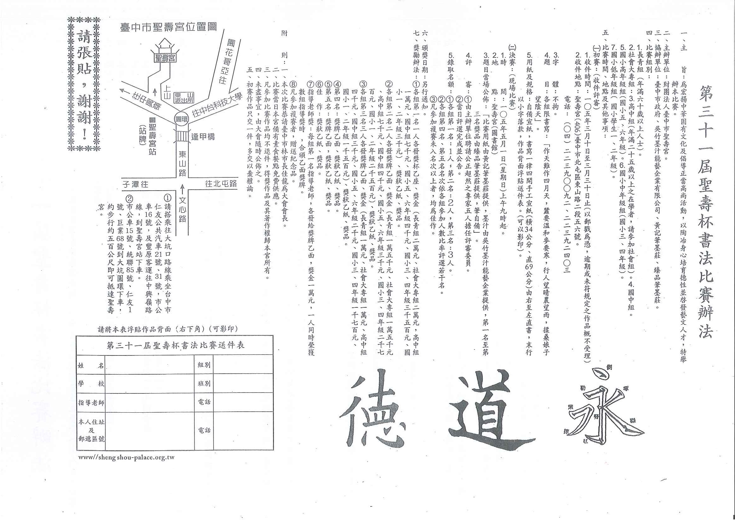 3. 題目:比賽當日公佈,比賽用紙由本宮提供,筆墨請自備。